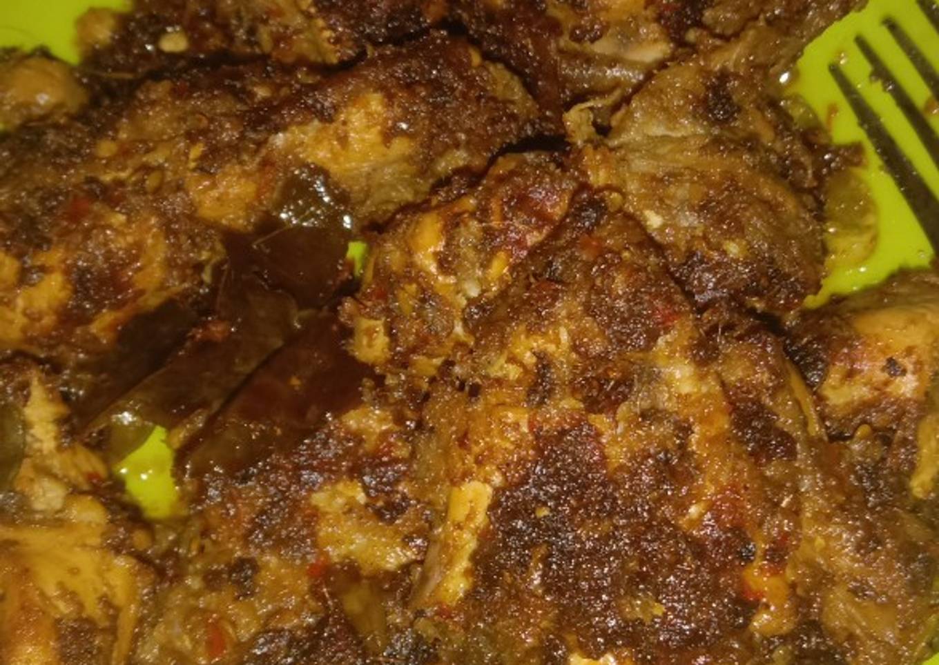 - Tumis bumbu halus sampai harum, lalu masukan ayam yang sudah di Marinasi dan semua bahan tambahan oseng oseng hingga tercampur lalu beri sedikit air saja agar bumbu meresap ke ayam