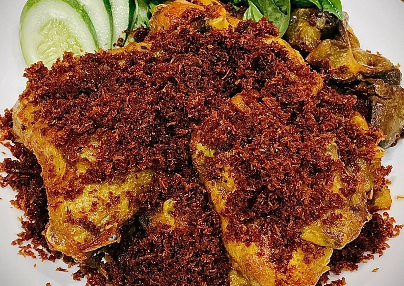 - Ungkep ayam di api sedang / kecil sampai air susut dan ayam empuk. Angkat dan tiriskan ayam. Air susutan sisa nya disisihkan untuk membuat serundeng.