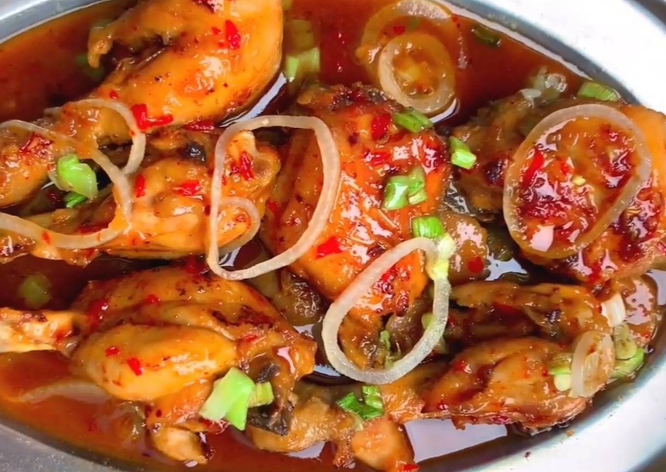 - Ayam Saus Hot Lava siap dihidangkan
